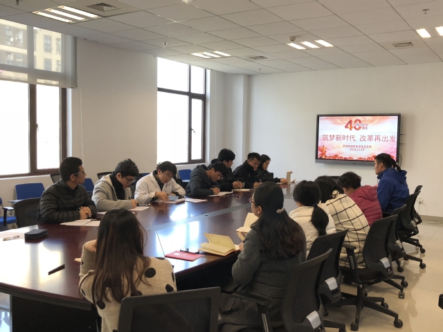 观看结束之后,支部立即召开相关组织生活会,分享并讨论自己观看庆祝改革开放40周年大会的体会。1978年,以党的十一届三中全会为标志,中国开启了改革开放的伟大征程。如同春雷唤醒大地,中国共产党带领人民进行的这场“新的伟大革命”,书写了一个国家繁荣发展的壮丽史诗,激荡起一个民族生机勃勃的复兴气象,不仅深刻改变了中国,也深刻影响了世界。