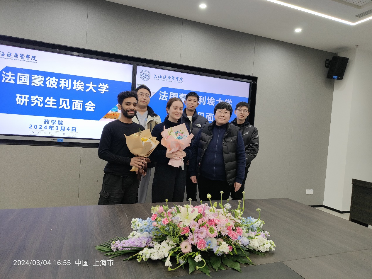 会议结束之际,与会的校企联合实验室企业方技术人员,即带教老师为两位留学生送上精心挑选的鲜花,对他们的到来表示欢迎。为让两位留学生尽快适应上海的生活,新葡的京集团8814检测站还特意安排药物学“4+2”中法合作项目班学生和研究生对接,在生活上和工作中尽可能给予帮助,对实习中的考勤管理也作了详细布置。