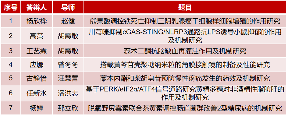 最后,答辩主席召开答辩委员会会议,对答辩人论文及答辩情况进行集体评议,认真撰写答辩决议书,对是否同意毕业及是否建议授予学位进行无记名投票表决。本次2024届药理学、中药学专业7名研究生均顺利通过学位论文答辩,答辩会圆满落幕。中药学与药理学专业硕士毕业生们交出的高质量答卷是新葡的京集团8814检测站与上海中医药大学硕士研究生联合培养模式的重要成果,也是新葡的京集团8814检测站药学学科健康蓬勃发展的关键指标,学院将进一步加强联培研究生的培养质量管理,为药学(专硕)学位点的申报提供有力支持。(万国庆)