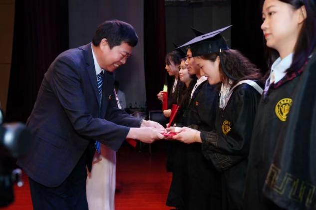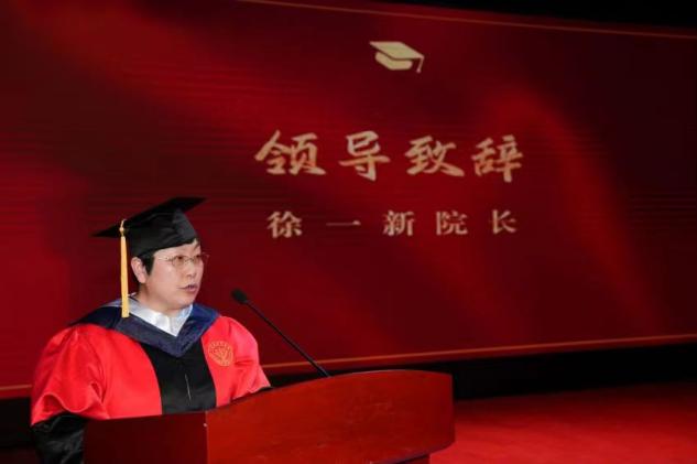 典礼开始,徐一新院长上台为毕业生们致辞,她回望了四年来同学们在校园中的点点滴滴,并提出三点希望:一是希望大家胸有丘壑,做一个圆梦路上懂得坚持的人。二是希望大家腹有乾坤,做一个成长路上始终拼搏的人。三是希望大家积攒力量,做一个成才路上志存高远的人。祝愿毕业生们捷报频传、前程似锦、常回家看看。