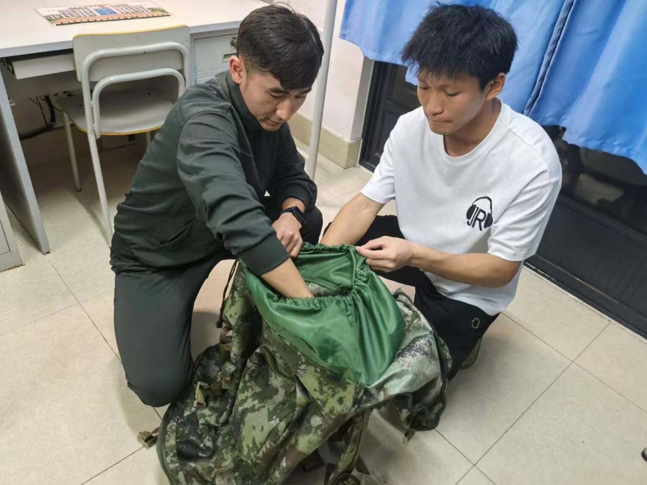 24级专升本班退伍士兵艾尼瓦尔·沙拉木热情带动同学一起了解国防知识,将军营的一抹绿带入了学院,充分展示退役军人永葆本色、奋发图强的优秀品质和“退役不退志,退伍不褪色”的精神风貌,激发了同学们的爱国情怀。22级药学高职1班退伍学生朱金玮走进宿舍,讲述了他退伍不褪色,积极服务在志愿一线的故事。并耐心地向同学们讲解当前大学生应征入伍的基本条件、时间安排、报名渠道及具体流程,他用自己的故事号召他们,珍惜宝贵的青春时光,以中国军人为榜样,勇于担当,积极奋进,这也激发了同学们携笔从戎、参军报国的热情。23级药学本科4班退伍学生李佳隆在活动结束后说到:“国无防不立,民无兵不安。青年大学生一定要充分认识到当兵入伍、保家卫国是我们的神圣职责,积极响应党和政府的征兵号召,踊跃报名应征,到部队中锻炼和成长自己,为国防事业贡献力量。”