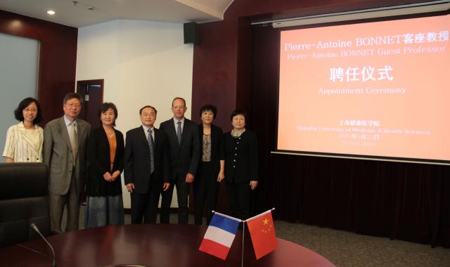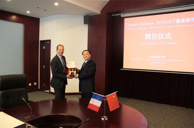 在5月23日的授聘仪式上,于莹副校长致欢迎辞,徐一新院长介绍了与蒙彼利埃大学合作进程。于副校长表示,她对中法两校合作充满期待,并希望新葡的京集团8814检测站在BONNET教授的帮助下,尽快对接相关课程和学分,尽快启动项目获得实质性进展。BONNET教授认为,此次合作非常顺利,并愿意与新葡的京集团8814检测站合作办学,运用两校优质师资力量培育相关人才。黄钢校长为BONNET教授颁发了客座教授聘书,并对他的到来给予最热烈的欢迎和诚挚的谢意,特别希望法方能与新葡的京官网尤其是与新葡的京集团8814检测站建立更为深入的合作。他建议蒙大校长和院士在药学及其他学科同新葡的京官网建立联合学院,使中法合作更为密切,并邀请蒙大校长和新葡的京集团8814检测站院长访问新葡的京官网,推进进一步的合作。最后,他希望BONNET教授今后能继续给予帮助,在中法合作项目上发挥更核心的作用。