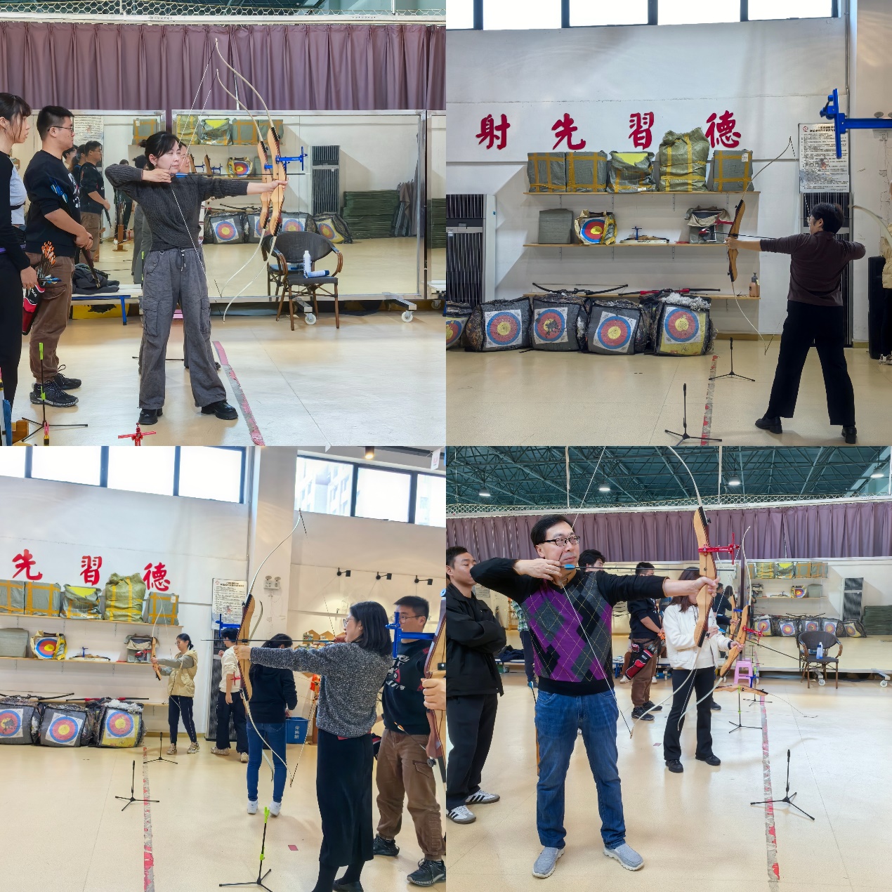比赛当天,阳光明媚,射箭馆内气氛热烈。教师们身着统一的运动装备,精神抖擞地来到比赛现场。在比赛正式开始前,专业教练对参赛教师们进行了简短而有效的射箭培训,讲解射箭的基本技巧与注意事项,确保每位教师都能安全、规范地参与比赛。