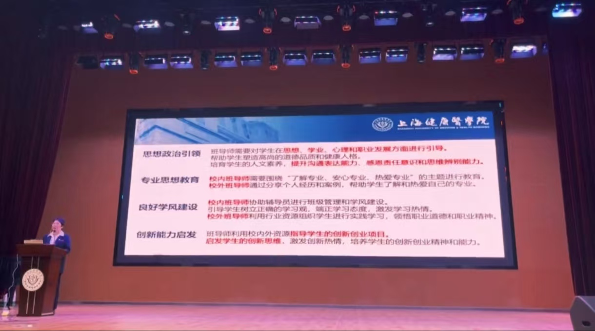 2024级新生班导师聘任仪式上,新葡的京集团8814检测站党总支副书记叶婧致辞。首先,叶书记强调了班导师制度的重要性,并对新任班导师们表达了期望和信任。接着,叶书记介绍了现阶段班导师的工作内容和职责:一是思想政治引领,二是专业思想教育,三是良好学风建设,四是创新能力启发。她指出班导师要将培养学生的文化知识、专业技能和人格素养并重,应给予学生职业发展的指导、帮助学生了解专业发展前景,及时提供行业企业的信息资讯,提升学生对培养方案的认同度,帮助学生清晰未来规划。