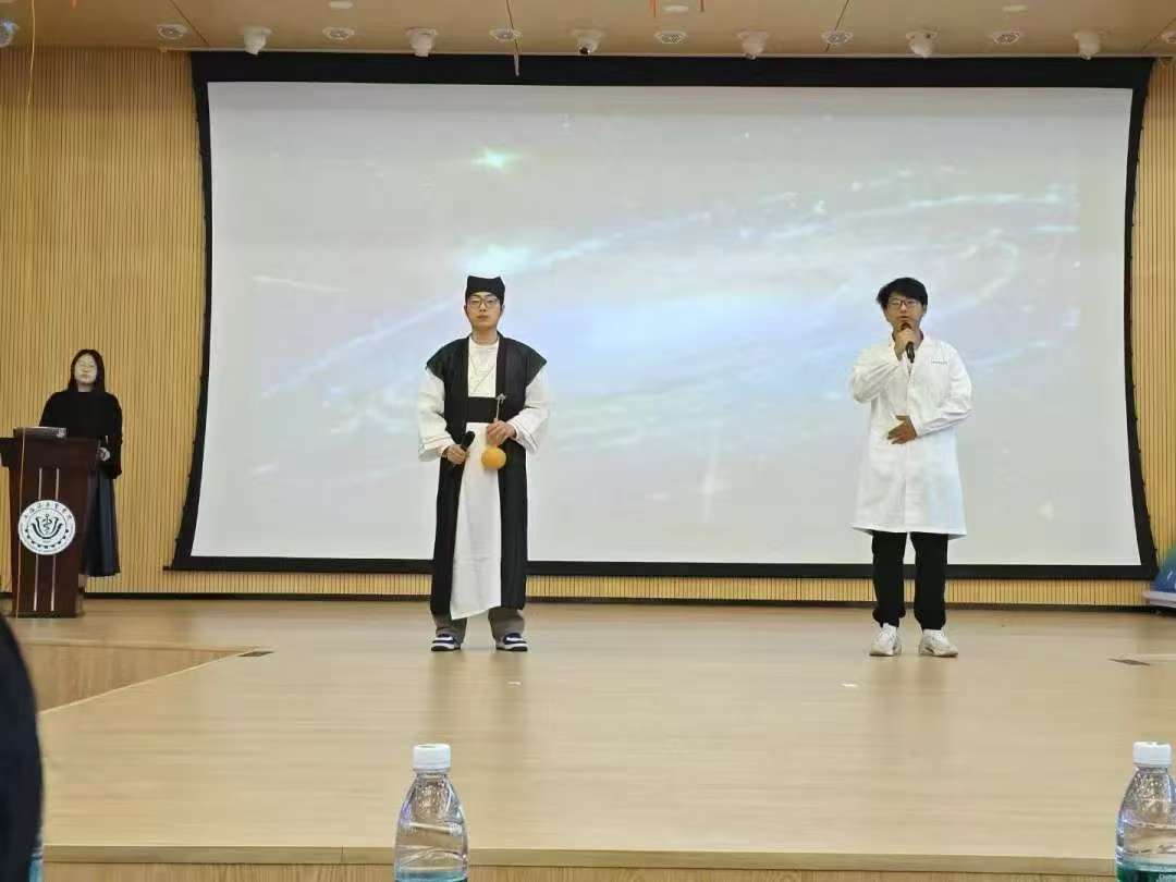 开幕式上,一场跨越古今的戏剧性场景精彩呈现。唐代药王孙思邈与现代中药研究者何士秀展开时空对话,通过《千金要方》的编撰与现代药理研究的对比,生动呈现了中药学从传统经验到科学研究的演进历程。在融合古代药房与现代实验室的沉浸式空间中,两位药学先驱以仁心济世的共同理念,诠释了药学工作者对生命的敬畏与使命担当,为药学科技节奠定了科学与人文并重的基调。