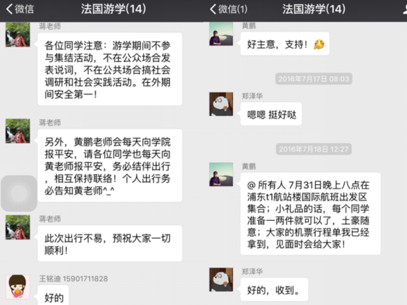第二次行前会议:为了确保游学前准备工作顺利开展,学院组织了第二次行前会议。针对大家面临的团签、机票、保险、高铁、住宿费用等问题,大家和带队黄老师逐一探讨了细节。会后,大家还建立了“法国游学”的微信群和公共邮箱,来自各个班级的同学们此时已经磨合成和睦的团队,在备签过程中分工明确,积极沟通,效率提高了不少。