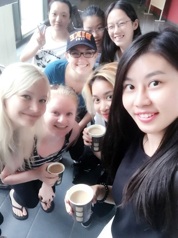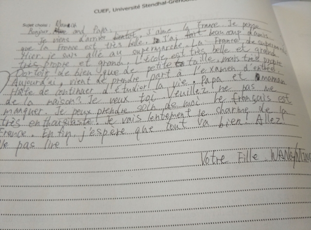短短几天,我们已经结交了许多其他国家的朋友,并且互换了联系方式,有的之后在校园里看到还会互相打招呼。此外,每两个课时之间会有20分钟的茶歇,每当这时,大家就会三五成群地聚在一起闲聊、休息,和来自不同国家的同学聊聊学习法语的经历,相互分享,相互学习。一个日本女孩告诉我们,她会说五国语言,还向我介绍了她学习语言的方法,令我受益匪浅!另一个新加坡女生会在我们有疑惑理解困难时,帮助我们,也让我们印象深刻。