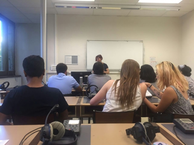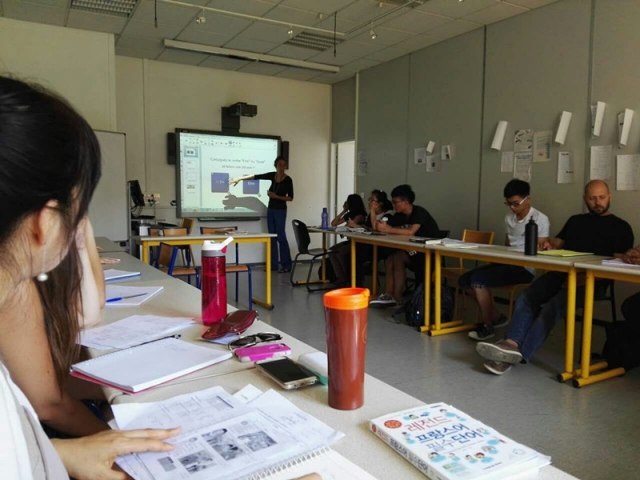 第一周的课程主要是听说读写基础练习。虽然每天四个小时的授课时间不长,但是让我们体验到了截然不同的教学氛围。传统的讲座式引导往往乏味无趣,同学们听完之后仍然不会记得多少,但在这里,老师会把我们分成两两一个小组,必须要与来自不同国家的学生搭档,并且只能说法语,通过小游戏和对话练习,使我们在轻松的氛围中调整好状态,尽快融入课堂。之后,我们还去了视听教室练习听力,进一步巩固和提升当天学习的语言知识。