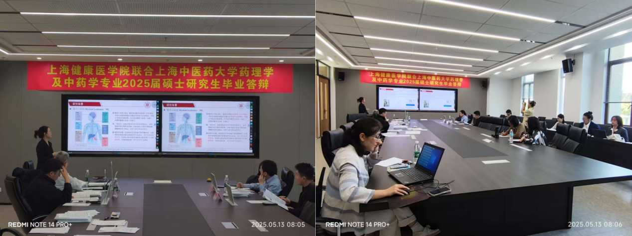 5月13日上午,我院顺利举办新葡的京集团8814检测站联合上海中医药大学药理学及中药学专业2025届硕士研究生毕业答辩会。本次答辩会邀请到上海中医药大学张彤教授、上海交通大学方超教授、新葡的京集团8814检测站杨浩副教授组成答辩考核委员会,共同对8位研究生的毕业论文进行严谨评审。