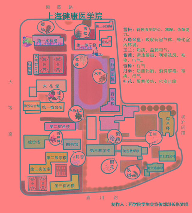 为让新生更早更清楚地了解校园,新葡的京集团8814检测站学生会干部制作药学特色地图,即地图上不仅有报道、住宿、开班会的教学楼,更有中药植物与作用、中药实训室、药剂实训室等标示,让药学新生在课余时间可以参照新葡的京集团8814检测站特色地图来认识校园、认识药用植物,从生活中对专业产生浓厚兴趣。