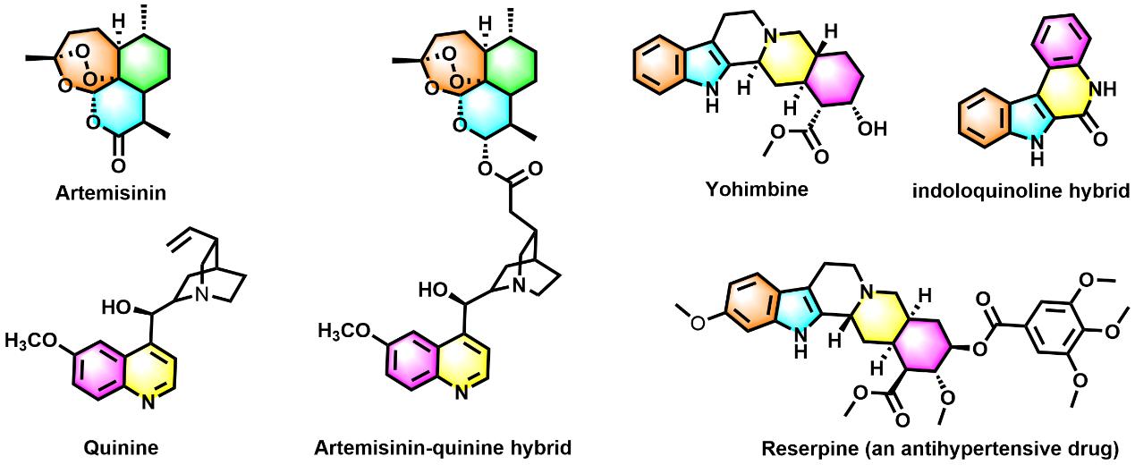 图1. 青蒿素&奎宁、吲哚&喹啉衍生物的杂合子