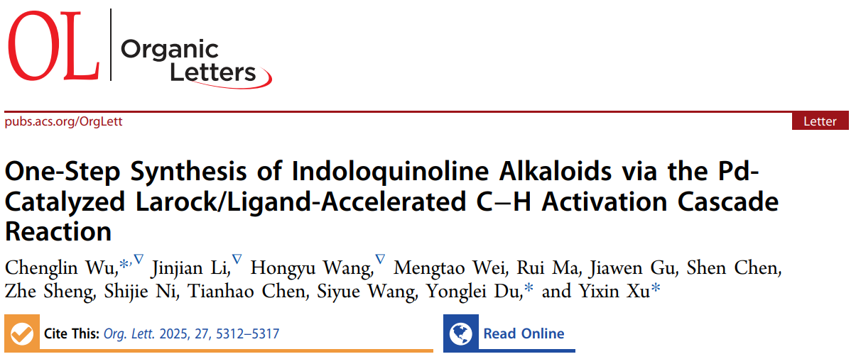 近日,我院青年教师吴成林在国际权威期刊《Organic Letters》发表了题为《One-Step Synthesis of Indoloquinoline Alkaloids via the Pd-Catalyzed Larock/Ligand-Accelerated C−H Activation Cascade Reaction》的研究成果。传统构建吲哚并喹啉的方法主要包括:(1)基于逆合成分析,需要在该骨架上断裂一根化学键预先构建高度官能团化的吲哚或喹啉衍生物;(2)采用过渡金属催化的C−H键活化策略,通常需要在吲哚分子上引入吡啶、嘧啶、喹啉等导向基团。本研究以易得的邻碘苯胺和苯丙炔酰胺为原料,通过钯催化的一锅法级联反应,首先发生Larock反应原位构建酰胺化吲哚中间体,随后利用配体促进的C−H活化实现分子内环化。该策略的创新性体现在:a)使用廉价易得的原料;b)巧妙利用酰胺基团作为内源性导向基,避免额外引入导向基团;c)通过一锅法实现两步关键转化,显著提高了合成效率。该方法的建立简化了吲哚并喹啉的合成路线,同时提高了反应效率和原子经济性,为药物化学领域开发结构多样化的吲哚并喹啉类先导化合物提供了高效、实用的合成平台。