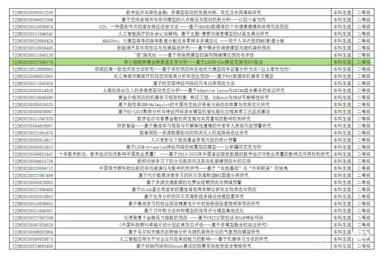 6月17日,2025年全国大学生统计建模大赛上海市获奖名单公布,新葡的京集团8814检测站新葡的京集团8814检测站药学专业2023级本科生何悦、李心雨、姜希哲在张晓凡副教授的指导下,凭借项目《非小细胞肺癌全转录组生存分析——基于LASSO-Cox特征选择与SVC验证》,在此次大赛本科生组中一举斩获校一等奖及上海市二等奖。值得一提的是,这是新葡的京集团8814检测站在该赛事中首次取得如此优异的成绩,实现了历史性突破。