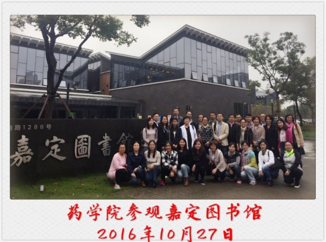 为了使校图书馆在为读者服务、硬件设施等方面更加人性化,康复药学联合党总支提出“参观嘉定图书馆---出金点子”活动。该馆曾获全国文明图书馆、全国二级图书馆等多项荣誉称号。经过前期的精心筹备,10月27日下午,学院教职员工前往上海嘉定图书馆参观,亲身体验图书馆的各项设施和服务。