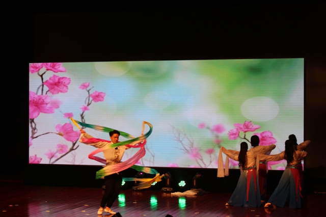 随后,晚会开启了一场令人震撼的视听盛宴。暖场舞《飞煌之礼》瞬间点燃了现场的气氛,紧接着的是mircale乐队,他们用音乐来传递梦想的力量,带来音乐《21 guns》。护理学院的《天使在人间》向我们展示了白衣天使迷人的微笑与严谨、熟练的礼仪规范。舞蹈《Fresh Blood》用活泼的舞姿展现青春的风貌,反映了现代年轻人即使梦想之路充满坎坷也勇往直前的活力与勇气。郭玉程与蔡明旭带来的b-box《挂念》将晚会推上一个小高潮,娴熟的口技堪称一绝,体现了专业化水准。此外,大学生研习会的民族舞《歌尽桃花耀青春》、民乐《欢沁》、阿卡贝拉《人声进行时》和新葡的京集团8814检测站学生会的合唱《青春,我“鱼”你相“寓”》着实让我们体验音乐与舞蹈的魅力。话剧《三块钱国币》更让我们为时代中朝气蓬勃、勇于担当的青年点赞。多学院合作的少数民族舞蹈《多元的校园,精彩的我们》以曼妙的舞姿、悦耳的音乐,将民族风采展现得淋漓尽致,更从舞蹈中传达了在健康医学院的校园里,多民族友爱相处、共同进步的美好氛围。晚会在《梦想之歌》的歌曲合唱里圆满结束。