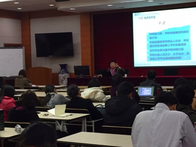 徐一新院长首先代表学院领导班子对一年来辛勤努力工作的全体教职员工表示感谢,对学院各教研室及教学、行政部门对学院各项工作的支持表示感谢!而后她分别从人才培养、学科建设、党风廉政、预算执行情况、学生工作、党建工作、年度工作计划落实情况、工作亮点与不足等方面向全体教职员工进行了详细地汇报。2016年,新葡的京集团8814检测站在党风廉政方面规范流程,制定党风廉政建设计划;根据学校要求配齐纪检、监察人员;制定学院二级物资采购、海外游学等规范化文件,从源头杜绝腐败滋生;重大事件均通过党政联席会议集体决策。同时,她又从预算项目、预算金额、执行金额、执行率、支出范围等几个方面向全体教职员工汇报了学院预算执行情况。