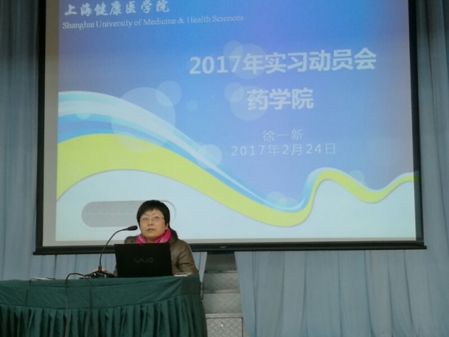 在动员会上, 徐院长用生动的案例,对即将走上实习岗位的同学们从医药行业发展前景、学院就业基本情况、实习工作安排与管理和实习调研表填写四方面进行了详细阐述。