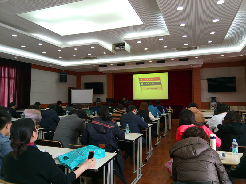 3月9日下午,为切实贯彻二级学院“三会三报告”制度,新葡的京集团8814检测站在徐汇校区职工活动中心召开2017年工作计划专题报告会,新葡的京集团8814检测站院长兼党总支书记徐一新、副书记叶婧及教职员工40余人出席了会议。