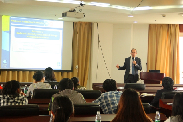420日,BONNET教授为新葡的京官网师生们作了一场精彩的学术讲座,重点介绍了抗肿瘤药物咪唑喹喔啉系列化学与生物学研究进展,与在场师生进行了积极互动。讲座结束后,BONNET教授又与药学专业本科法语班的同学举行了见面会,向同学们介绍蒙彼利埃大学,介绍药物学专业,并带给同学们各专业方向的宣传单片。与会同学十分珍惜此次机会,积极主动用法语或英语和教授交流,纷纷就中法合作本硕贯通项目中感兴趣的话题向教授提问,教授认真回答了同学们的问题,鼓励同学们学好法语和专业课,在学业上取得更大的进步。
