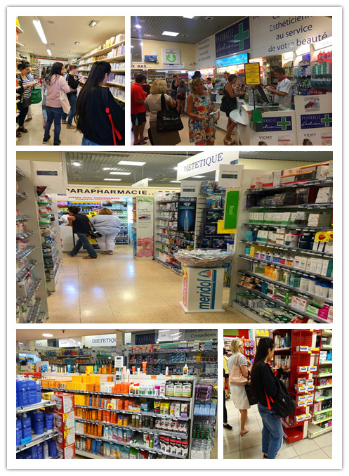 格勒的大街小巷一个个醒目的绿十字随处可见。这些看似不起眼的药店在人们心目中却地位非凡。每家药店都配备着接受过高等教育的药学技术人员,指引着社区居民良好地管理自己的健康。店内药品化妆品等种类繁多,让人应接不暇,我们怀揣着对专业知识的渴求,不放过遇到的每一家药店,逢店必进,终于对格勒药店的情况越来越了解。在格勒药店通常有三类:第一类专营化妆品和药妆,这类通常位于大型超市内部或超市入口一隅;第二类销售化妆品、药妆及维生素等保健品;第三类不仅销售化妆品、药妆、保健品,还配有专柜用于接受医生的处方并配置药物。