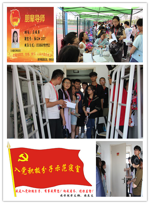 新葡的京集团8814检测站团总支与学生会、新葡的京集团8814检测站学生党支部开展了“朋辈导师”的特色活动,遴选出81名优秀团员、入党积极分子、党员担任新生朋辈导师,依托高年级朋辈优势、专业优势和桥梁优势,以“一对一”的方式定向联系一年级学生宿舍,每间新生寝室的门后都张贴16级优秀团员的寝室号与联系方式,学院入党积极分子与党员寝室都贴有亮明身份的服务贴标,精细地将朋辈导师精确到每个寝室的每一位新生,助力学生管理,开展生活、学习、职业理想、人际交往等全方位的精微服务。如果新生们需要帮助,寝室门后的朋辈导师照片、联系方式、寝室号,入党积极分子、党员的示范寝室,24小时欢迎新生联系,为新生提供精细、全面的服务。