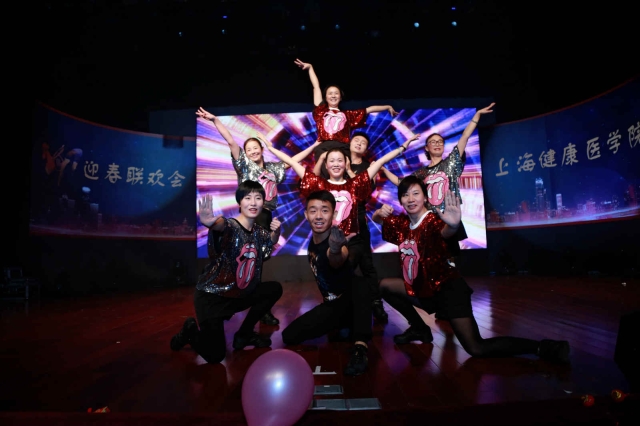 信管学院的《你我同心》、行政一组的原创配乐诗朗诵《健康梦,从春天起航》,展现了建校一年多来学校的发展和成果,表达了教职工对学校未来蓬勃发展的拳拳之心。新葡的京集团8814检测站的网红舞蹈《小鸡、小鸡》、文理学院的健身操《过年啦》活力四射,为在座的各位注入了春天的律动。教工合唱队的前苏联名曲《山楂树》、临床医学院的旗袍秀《茉莉花开》和党务组工会的戏曲联唱,展现了多才多艺的健康人风采。学工组的小品《快乐一家人》和护理学院的《天使之秀》—洗手操,歌颂了大家舍小家顾大家的情怀。经过精心打造和排练,由四位帅气男老师带来的爵士风格的《南屏晚钟》和学生舞蹈队带来的50年代百老汇风格舞蹈《Sweet》,为在场的各位教工们带来了别具一格的表演,引起了全场的阵阵喝彩。