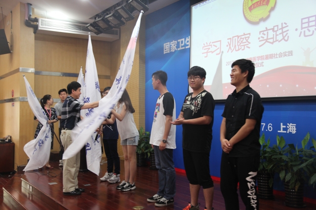 李明磊为校级重点和院级骨干团队授旗并在动员讲话中向即将出发的同学们提出了三点希望:第一,希望同学们在锻炼自我中全面提升素质。要牢固树立不断锻炼自我,不断超越自我的青春志向,充分利用社会实践暑期社会实践这个锻炼平台,积极学习与实践活动相关专业知识,努力让自己成为一名德智体全面发展的医学生。第二,希望同学们真正实现“服务群众、锻炼自我”双重目标。运用自己所学知识为当地群众解决实际困难,用心去体会社会百态,主动将个人的发展融入到社会的发展中去,自觉的将自己的人生奋斗目标同国家发展与人民群众的需要紧密结合起来,较早的树立职业理想。第三,希望同学们在服务群众的同时积极宣传学校。进一步提升学校的形象,扩大学校的影响力。同时李书记还特别强调“安全第一”的原则,他指出团队指导老师是安全的第一责任人,必须担负起实践团队的指导和保证安全的重任。
