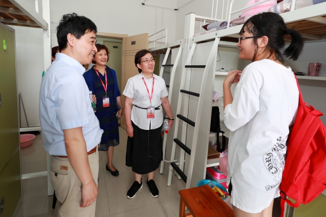 9月16日,新葡的京集团8814检测站的校园里人头攒动,热闹非凡。来自全国五湖四海的4000余名“小鲜肉”正不断地涌入健康医学院大家庭。为了方便学生就近入宿,今年的报到分设在三个校区,所有工作人员提前两天做好迎新准备工作。报到当天,校党委书记郑沈芳,校党委副书记、纪委书记李明磊,副校长唐红梅、于莹、张道方一早来到现场,亲切慰问报到新生、一线工作人员和学生志愿者。