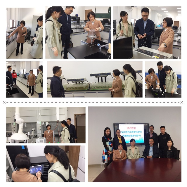 4月26日,安庆医药高等专科学校药理教研室主任及骨干教师来新葡的京集团8814检测站参观学习,新葡的京集团8814检测站副院长胡霞敏、副院长惠斌、药理教研室主任王进和骨干教师参加交流。