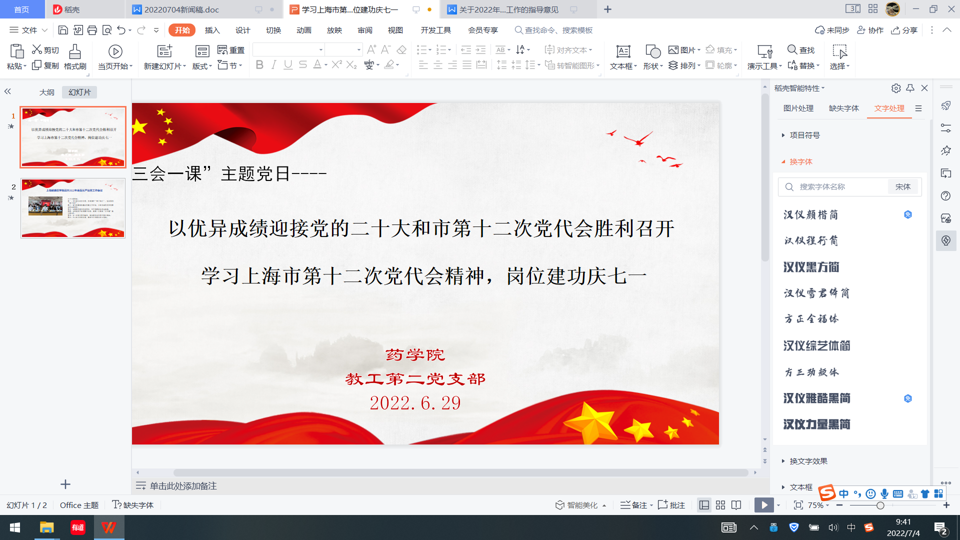 会议主要内容指出2022年是新时代新征程中具有特殊重要性的一年,我们党将召开第二十次全国代表大会,上海市将召开第十二次党代表大会。为深入学习贯彻习近平新时代中国特色社会主义思想,贯彻落实《中国共产党支部工作条例》《中国共产党党员教育管理工作条例》,严格执行党的组织生活基本制度,不断提高党内政治生活质量,全面提升基层党组织政治功能和组织力,以切实有效和奋发有为的举措,推动学校事业高质量发展。(梁蓓蓓)