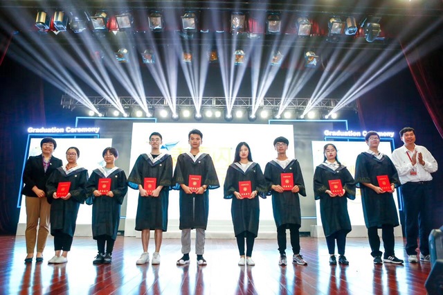 毕业典礼在《青春闪药,为爱启程》的视频中拉开序幕。视频回顾了同学们大学三年的青春时光,送来了老师们的毕业祝福和深情寄语,引领同学们为了母爱、父爱、师爱温暖起航。